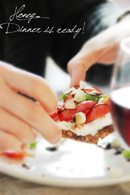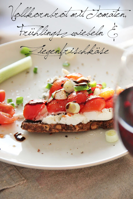 Get the plates out, baby… because we are going to have some nice slices of multi-grain-bread with goat-cream cheese, spring onion, tomatoes & crema di balsamico