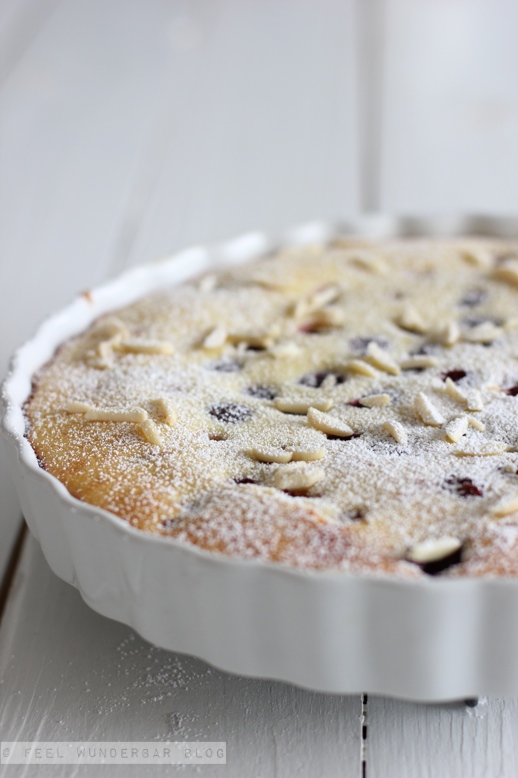 Wer mag, kann 10 Minuten vor Ende der Backzeit noch ein paar Mandelblättchen auf dem Clafoutis verteilen!