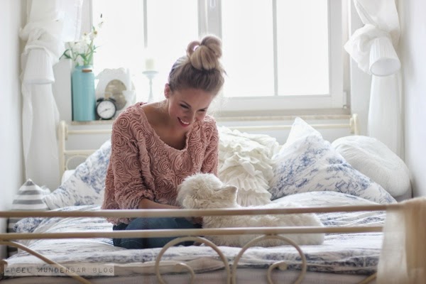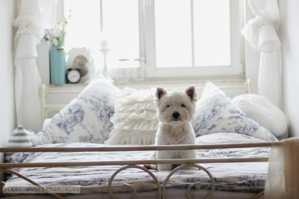 September 26, 2013 at 8:10 amJetzt wird es ja fast unverschämt: Unverschämt süßer Hund, unverschämt hübsche Frau & dann auch noch ein unverschämt schönes Schlafgemach ;D