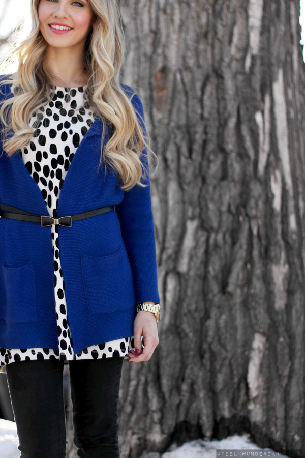 In letzter Zeit kann ich gar nicht genug von Royalblau bekommen! Kombiniert mit meinem Dalmatiner-Top definitiv eines meiner Lieblingsoutfits in letzter Zeit. Ich fühle mich immer ein bisschen wie Cruella de Vil darin ;)