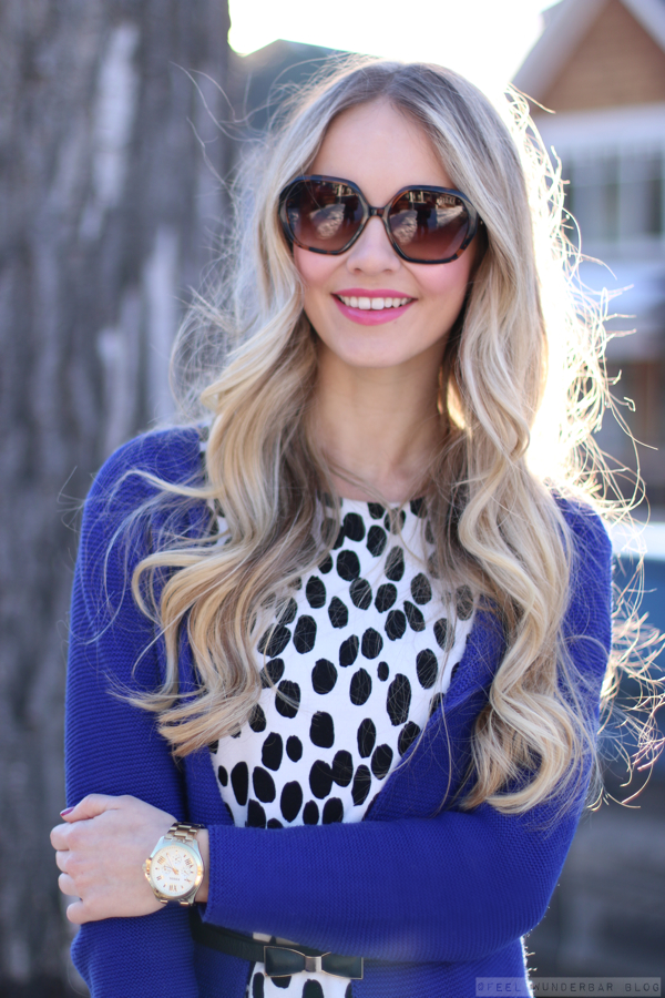 Lately I can not get enough of royal blue! In combination with my polka dot top from H&M definitely one of my favorite outfits at the moment. I always feel a bit like Cruella de Vil, when I wear it ;)