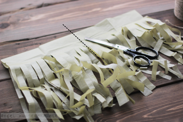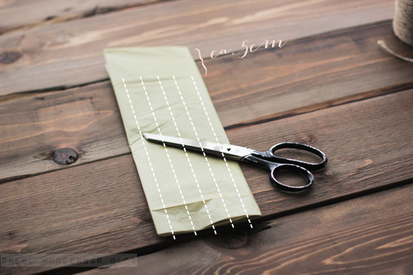Das Papier in dünne Streifen einschneiden und oben einen ca. 5cm Rand lassen.