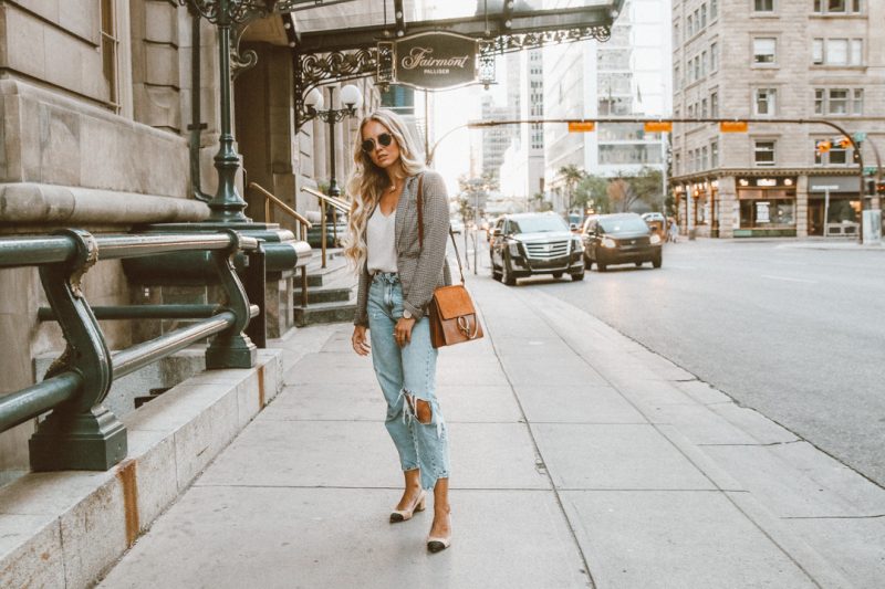 Checked Blazer Vintage Denim Cognac Chloe Bag Pointed Heels Outfit-23